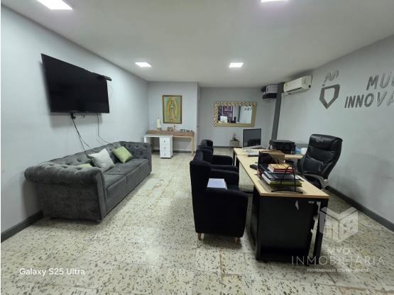 Segunda planta cuenta con oficina con aire y baño interno, TV, cabina para bodega, sala exhibición, baño.